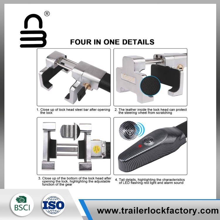· প্রতিরোধক: ফ্ল্যাশিং লাল LED সূচক যা অ্যালার্ম সক্রিয় করা হলে গতি বাড়ায়। চোরদের আগেই জানিয়ে দিন যে এটি একটি সাধারণ স্টিয়ারিং হুইল লক নয় এবং আপনার গাড়ি থেকে দূরে থাকতে হবে। অ্যান্টি-থেফ্ট কার স্টিয়ারিং হুইল বার সহ নিরাপত্তা লক সহ অ্যান্টি-পিকিং সুরক্ষা ব্যবস্থা। 2টি বিপরীতমুখী ফ্ল্যাট কী।