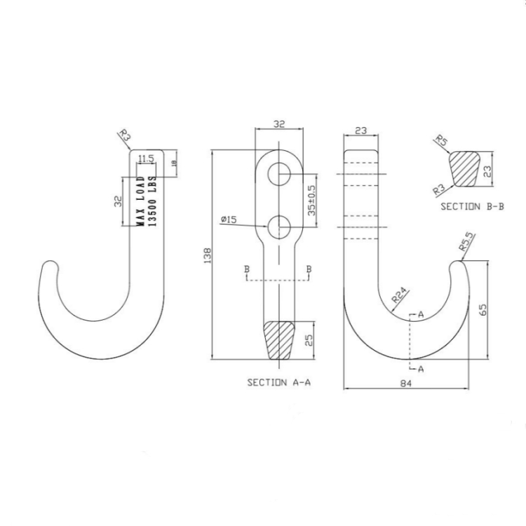 এইজে হুকস টোয়িং সর্বাধিক শক্তির জন্য উচ্চ-শক্তি, তাপ-চিকিত্সা, নকল ইস্পাত থেকে নির্মিত হয়। এটি 10,000 পাউন্ডের জন্য রেট দেওয়া হয়েছে। (মাউন্টিং কাঠামোর মধ্যে সীমাবদ্ধ)