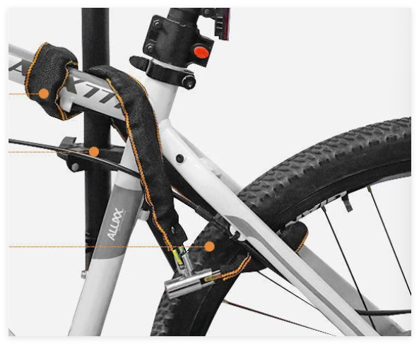 এই ইউহেং পোর্টেবল চেইন লক বাইরের ফ্যাব্রিক হ'ল প্রিমিয়াম-গ্রেড, ঘর্ষণ-প্রতিরোধী, শক্ত, ব্যবহারিক এবং আপনার বাইকটি স্ক্র্যাচ করবে না।